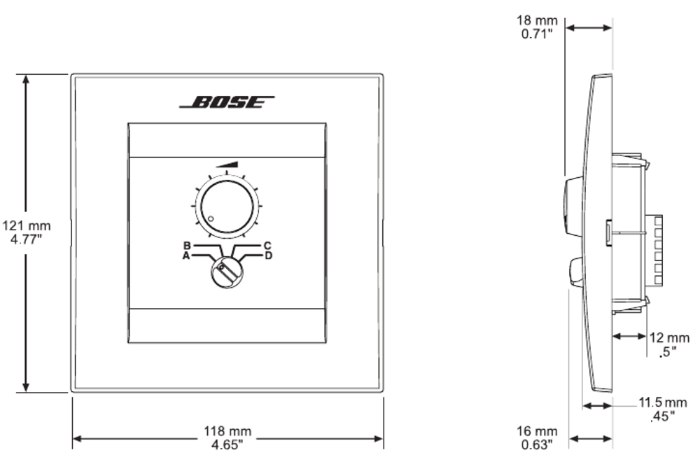 ControlCenter CC-4 – настенный контроллер для дистанционного управления громкостью акустических систем разработанных компанией BOSE, а также выбор одного из четырех каналов (источников) вещания.