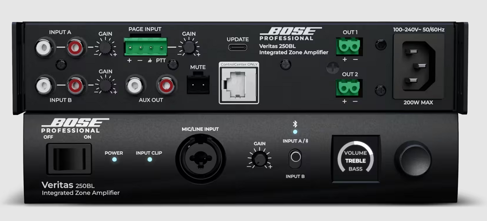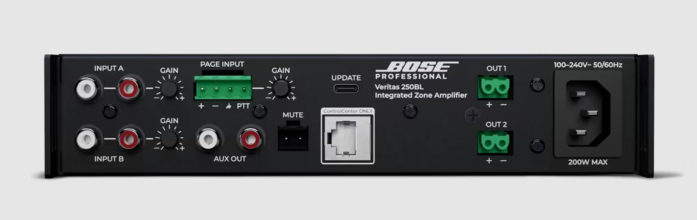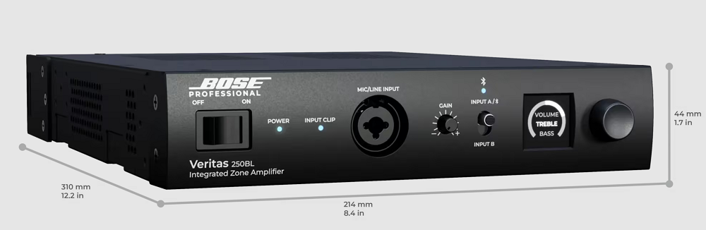 Veritas 250BL – профессиональный двухканальный микшер-усилитель мощности класса D производства всемирно известной фирмы BOSE из серии зональных усилителей Veritas отмеченных многими международными наградами. Обеспечивает превосходное качество звука при воспроизведении фоновой или основной музыки, а также голосовых объявлений. Прекрасно подходит для небольших помещений коммерческих объектов, таких как рестораны и кафе, магазины и бутики, лобби отелей, офисные пространства, зоны отдыха в ТРЦ и т.д., и т.п.